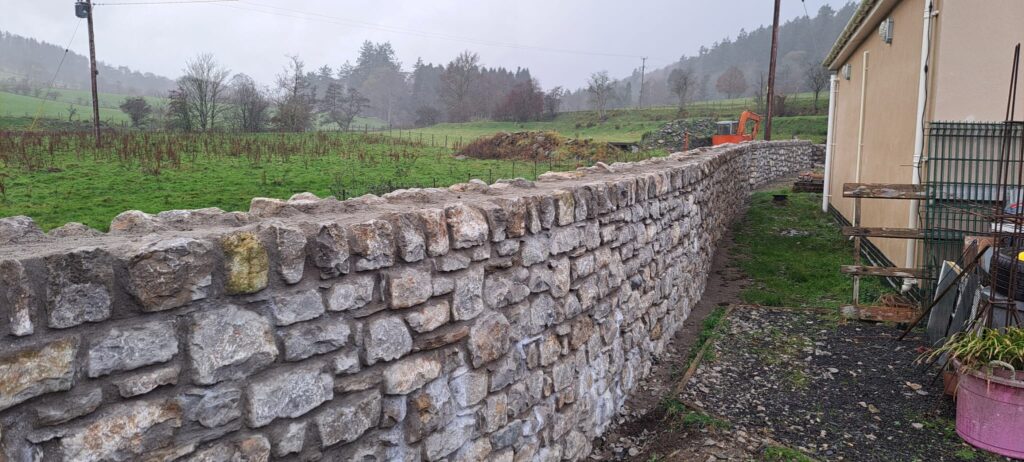As can be seen in the photos this is random limestone walling that gives a lovely rustic finish to the walls it is used in.