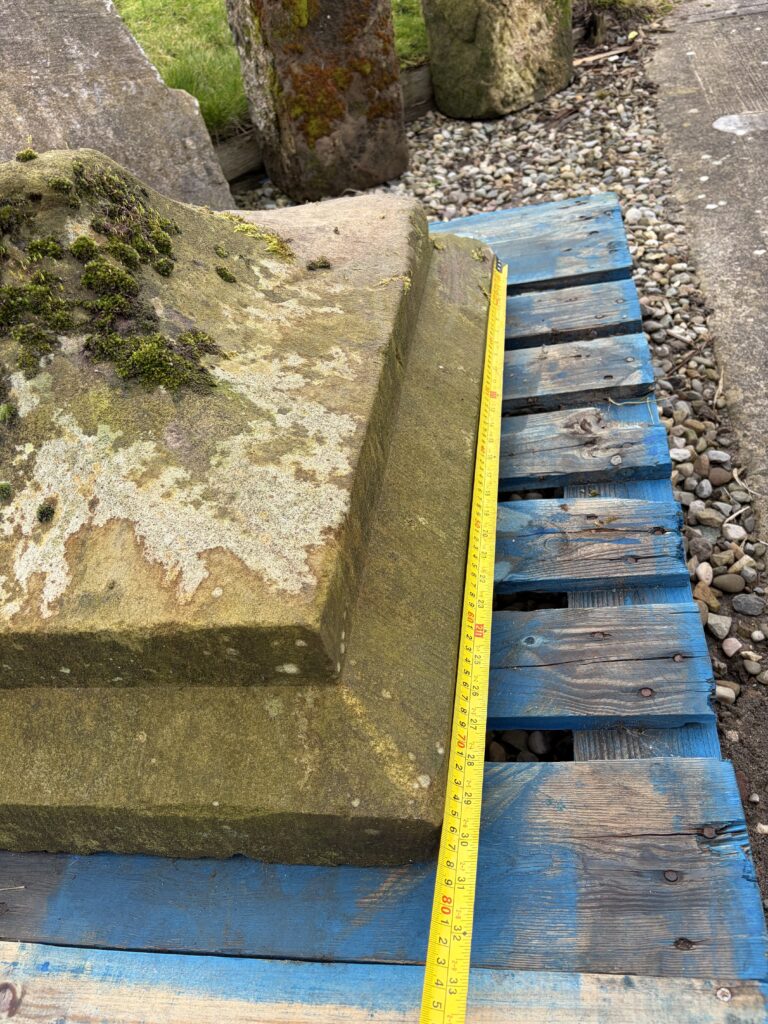 The Yorkstone pier cap is around 30″ square at the base and is around 13″ tall.