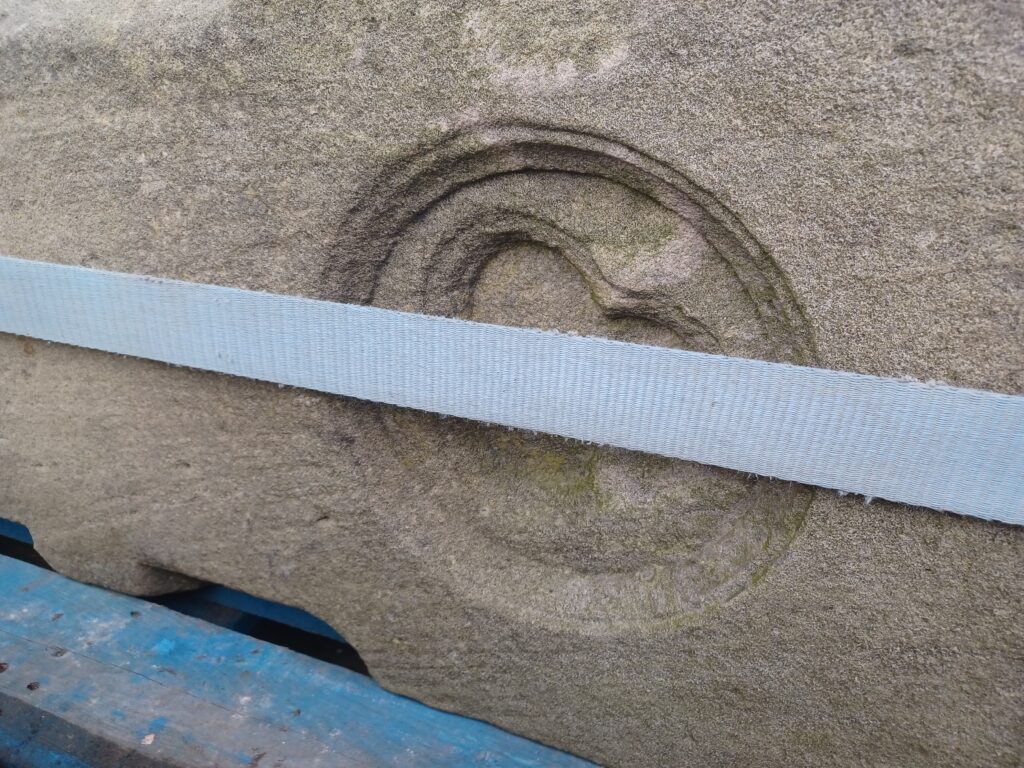 The Yorkstone posts measure approx 8 ft long in total.  As they were set up they show 6ft out of the ground but the dressed edge would allow for another 10″ to be above the ground.