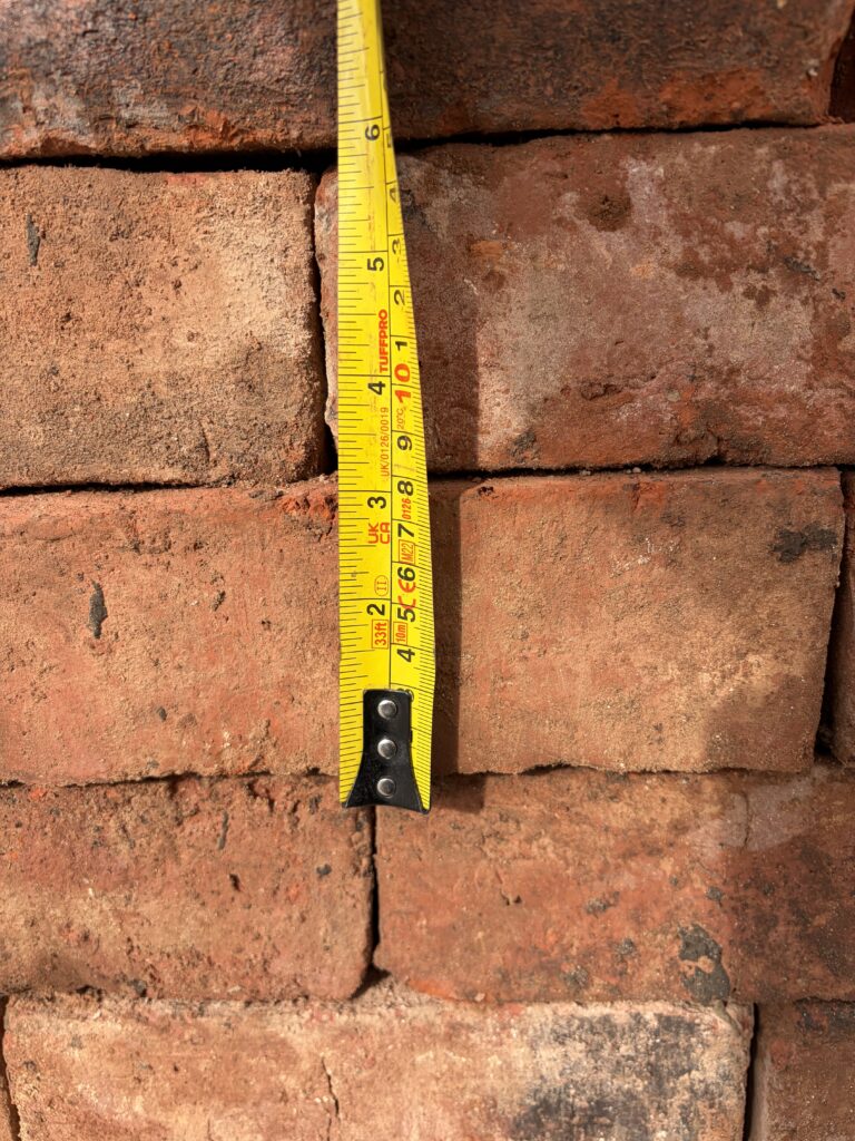 You are viewing this fabulous batch of reclaimed Cheshire red handmade bricks that are approximately 3″ in size on the face.