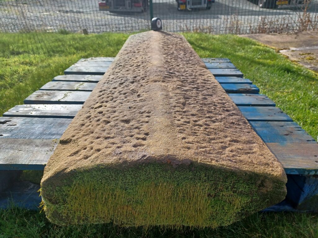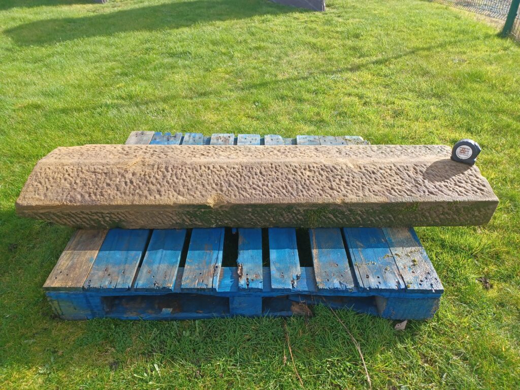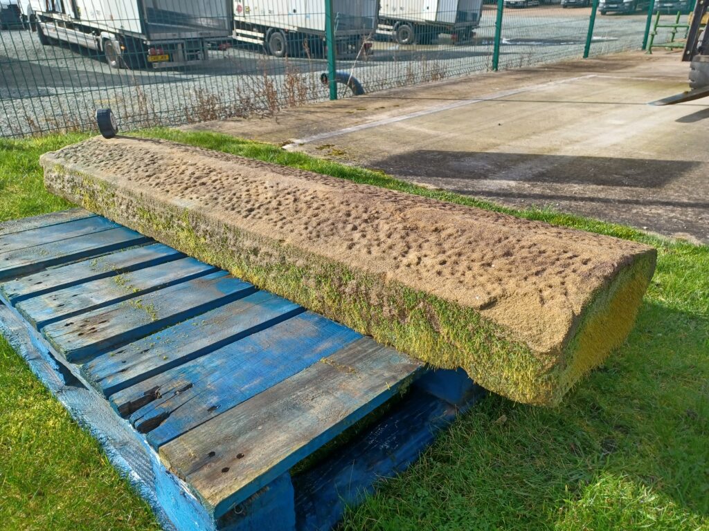 You are viewing this lovely York stone triangular tooled coping that measures 64″ long by 16″ wide by around 6″ thick that has been reclaimed from a large local property to us.