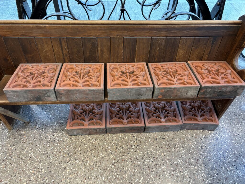 Altogether these are the finest decorative brick plaques that we have ever had the privilege to have for sale in our yard, manufactured by the world famous Dennis Ruabon factory, which was only a few miles from us.